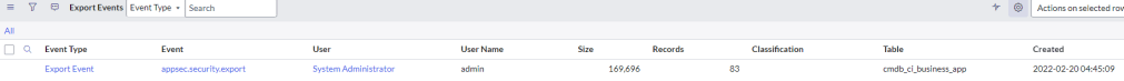ServiceNow introduces Export Events [isc_export_event]table. The table stores export transactions that are performed by any user. The table gives information about what data is being exported, who exported the data, and when the data is being exported.